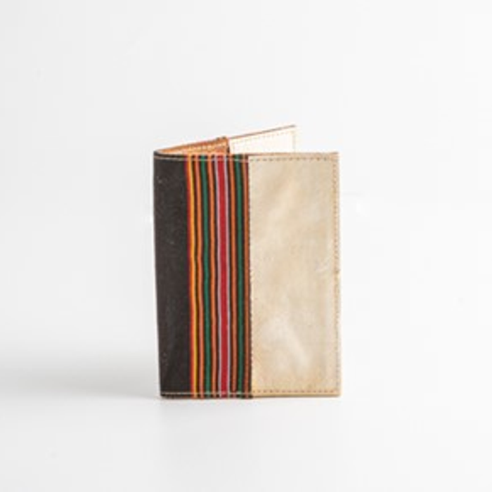 This diary cover is adorned with handwoven threads and features a sustainable shield made from Mylea, a unique blend of mushroom and plant-based leather.